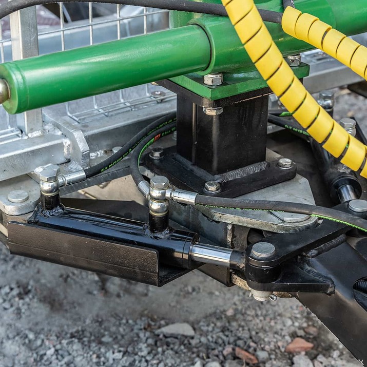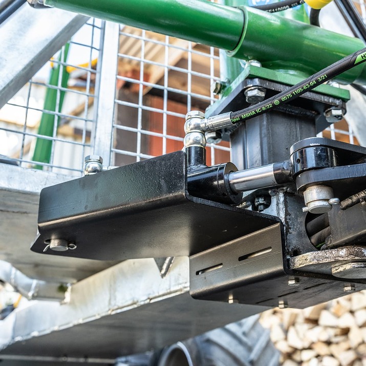 Hüdraulikat juhib Itaalia BLB klapipakett, mis on tuntud oma täpsuse ja kiire reageerimise poolest, mis tagab ohutu ja tõhusa manööverdamise. Stabiilsuse tagamiseks peale- ja mahalaadimisel – isegi ebatasasel maastikul – on haagis varustatud võimsate hüdrauliliste 800 mm pikkuste tugijalgadega, mis tagavad ohutu ja stabiilse tööasendi. Haagis on varustatud piduriklapiga, mis lülitab ajami elektriliselt välja kohe, kui ATV pidurdatakse.